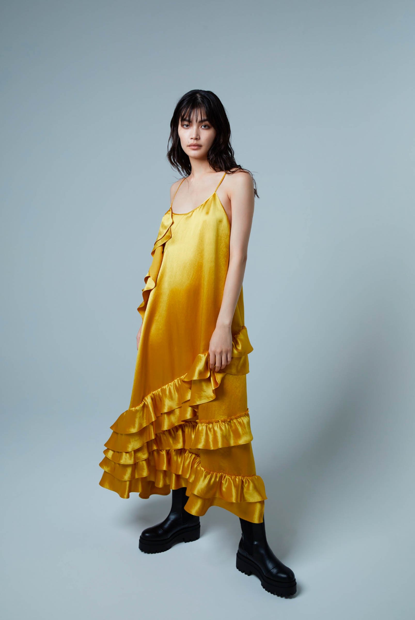 メッキでは「メッキは加工させるものだけれども、丁寧に手を加え加工されたものを纏うことで誰しもを輝かせる。メッキが剥がれ落ちていく時も、また新たに加工していく時もより輝いていける」をコンセプトに掲げ、メインターゲットは30代の高感度な女性に設定。アイテムは全て日本製で、身体のラインが美しく見えるシルエットを追求した。デビューコレクションでは、ラッフルをふんだんに配したサテンドレス(8万円)やブラウス(4万8000円)、ビッグリボンをデザインしたシルクブラウス(6万5000円)、ポリエステルやリネンを採用したチェック柄のセットアップ(5万8000?7万2000円)、オリジナルのグラフィックをデザインしたTシャツ(1万5000円)、キャンドル(7200円/いずれも税別)など全17型をラインナップ。ルックのモデルには福士リナを起用した。