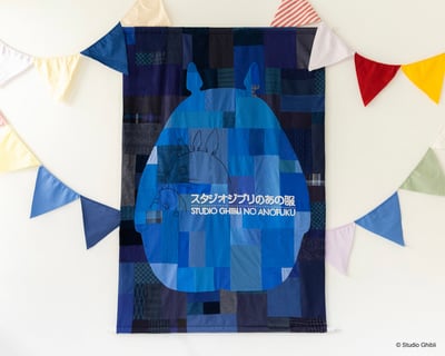 ポップアップツアーでは、新作商品として「となりのトトロ」の名シーンをデザインに取り入れたスウェット(8250円)とトートバッグ(9900円/いずれも税込)を販売。絵柄にある傘や服、トトロの頭の上の葉っぱには1点ずつ異なる布をあしらっており、雨を手刺繍で施した一点物となっている。トートバッグは自宅での手洗いが可能。裏毛素材のスウェットは、110と130の2サイズを用意している。