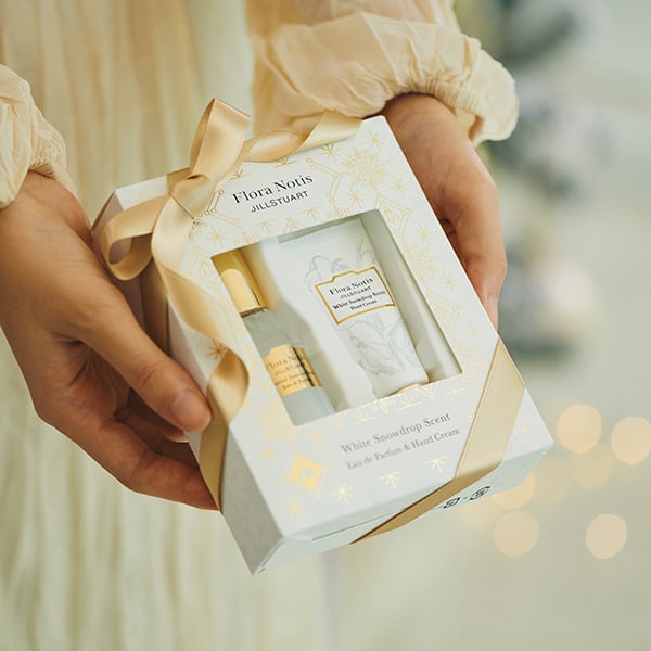オードパルファン(20mL)とハンドクリーム(20g)を組み合わせた限定セットで、香りは『ホワイトスノードロップ』『フレンチローズ』『リッチカメリア』の3種類から選べます◎