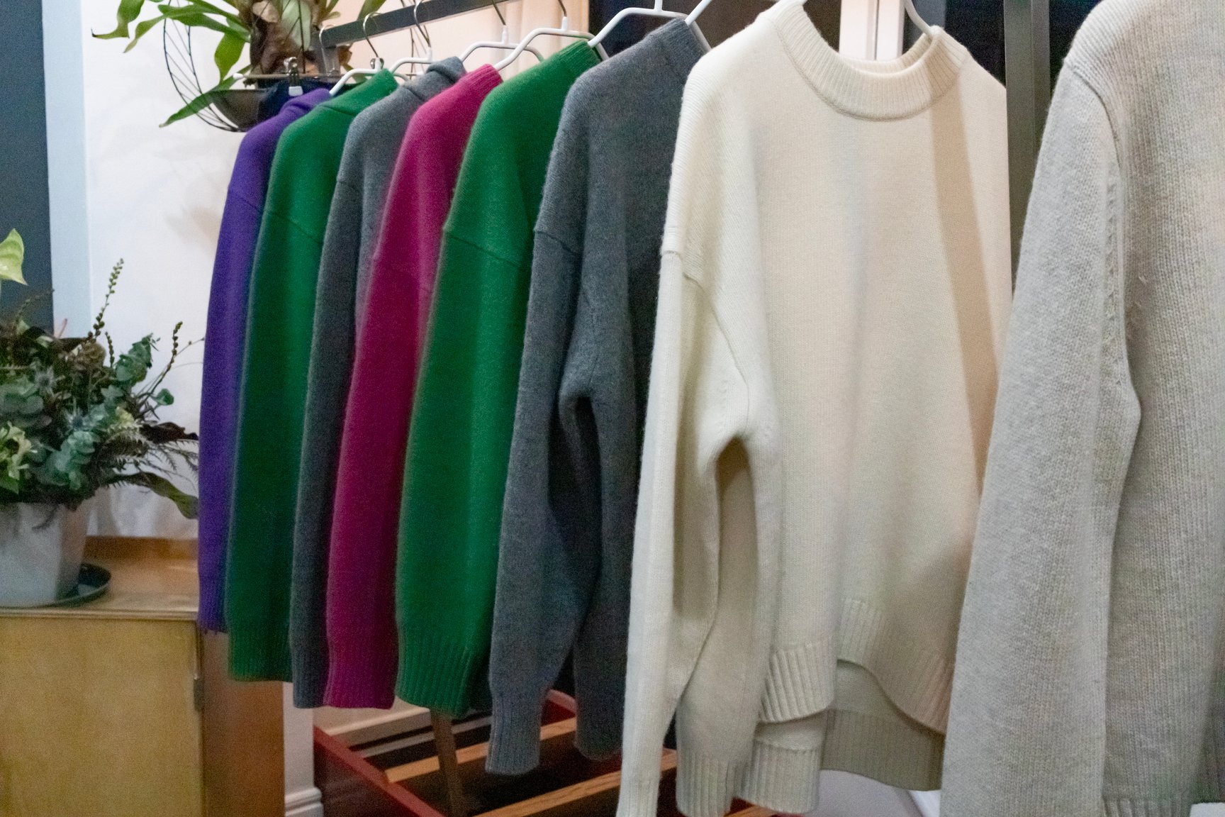 ファーストコレクションは中国の工場で余った残糸を用いたニットを展開。ウールカシミアのセーターやカーディガン、フーディー、ニットキャップなど全6型をラインナップしている。カラーはベーシックなブラックやホワイト、グレーに加え、グリーンやパープル、ピンクが揃う。価格はウェアが1万5000?1万7000円、ニットキャップは3500円。残糸を使用することでコストを抑え、手に取りやすい価格設定を実現した。