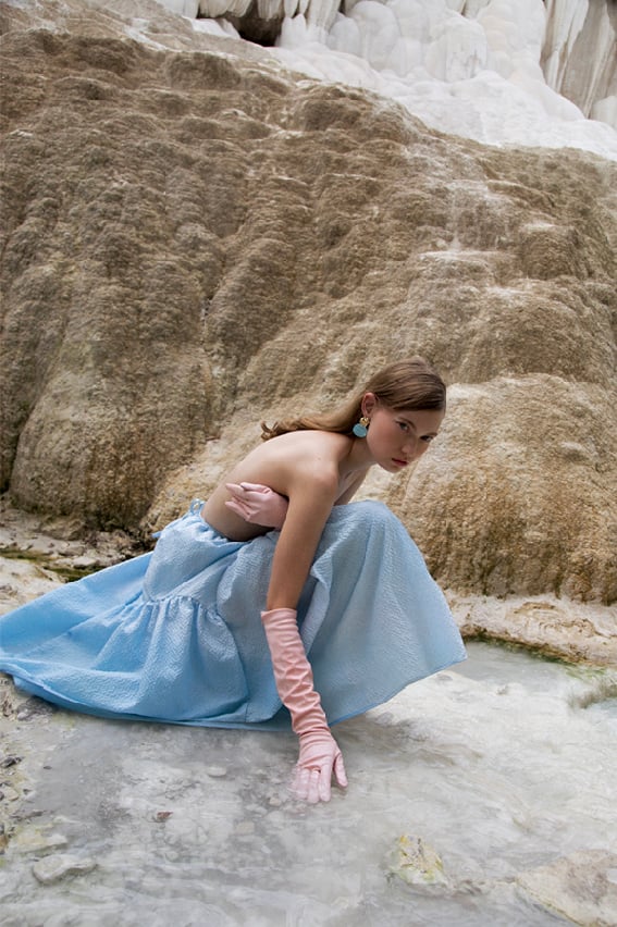 skirt by CECILIE BAHNSEN, earrings by PEET DULLAERT, gloves by REGINA WEBER