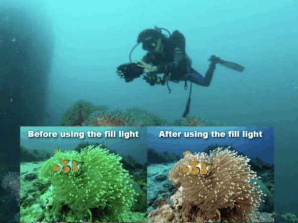 もちろん水中は陸上よりも光が少なくなり、撮影は難しいものになる。そこでHotDiveではパワフルなライトを搭載。明るさ800ルーメン、照度130度、カラー温度5800?6500KのLEDライトで、ナイトダイビングでも使えるとうたう。