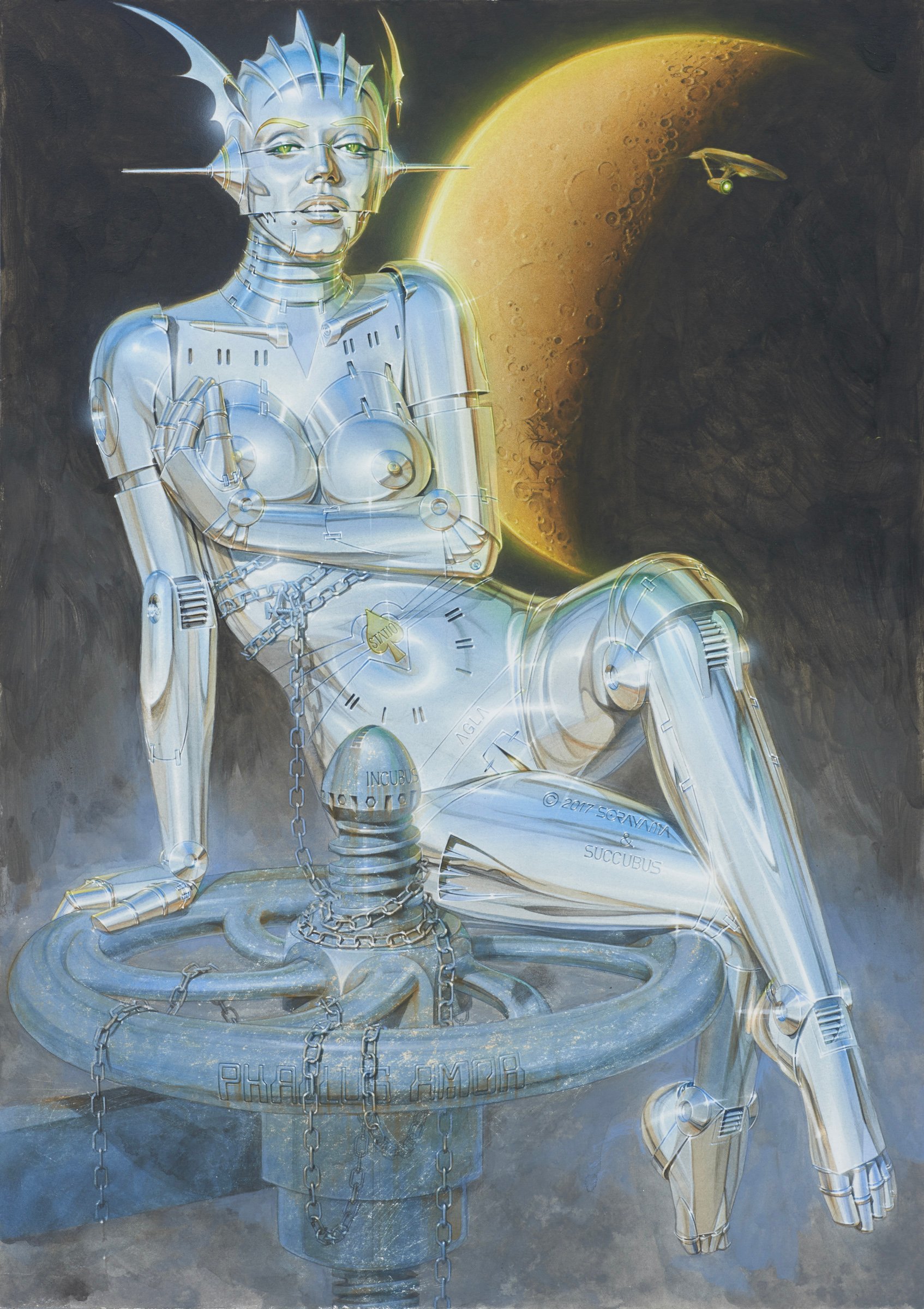 空山基は1947年、愛媛県今治市生まれ。人体と機械の美しさを追求し、1999年に発表された「ソニー(SONY)」のペットロボットAIBOのコンセプトデザインを担当。手描きで精密に描かれたクロムメタルで覆われたエロティックなアンドロイド「Sexy Robot」シリーズは、様々な写実表現を通して描かれている。