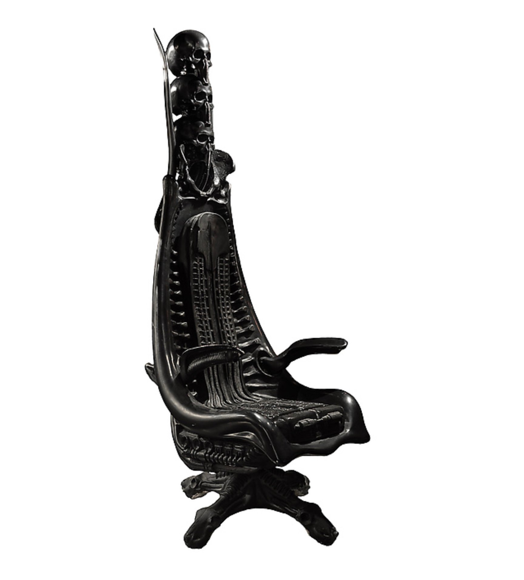 一方、ハンス?リューディ?ギーガー(H?R?GIGER)は、スイスのシュルレアリスムの画家で彫刻家。生体機械的な生物や地球外的風景、不穏で性的な装置を描く。50年以上にわたるキャリアの中で、家具や版画、舞台美術デザイナーとして映画用小道具など多様なメディアで作品を発表し、リドリー?スコット監督作品、映画「エイリアン」のコンセプトデザインを手掛けた。