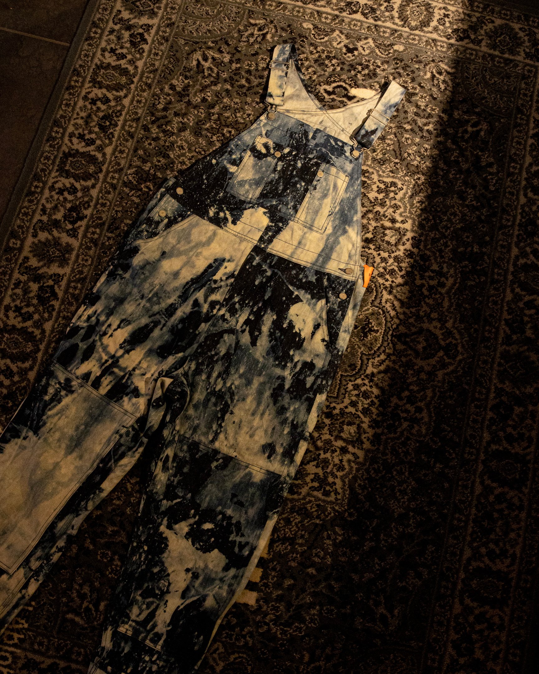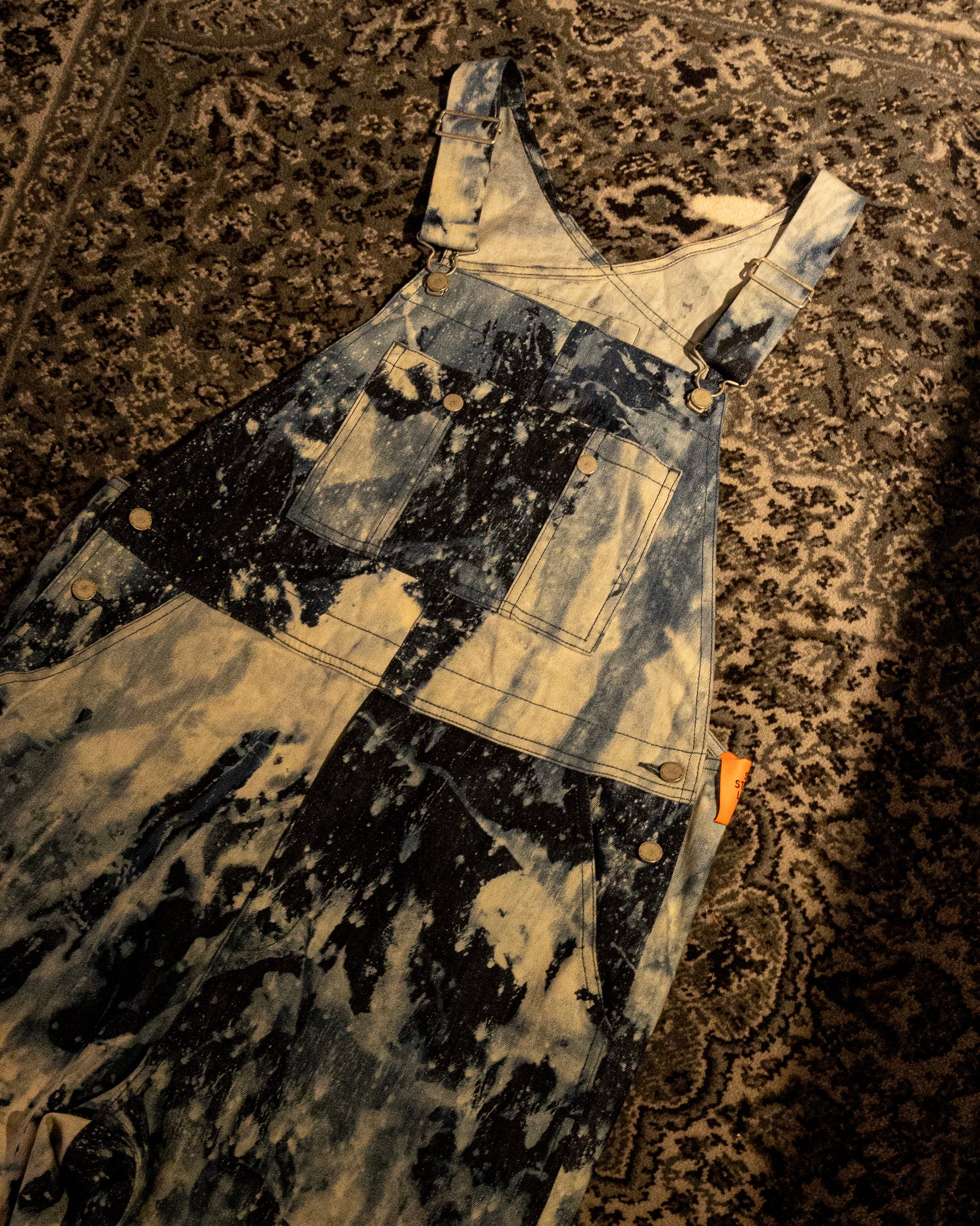 F:このオーバーオールは大胆なハンドブリーチで、まさにアーティストが着ていそうなデザインです。