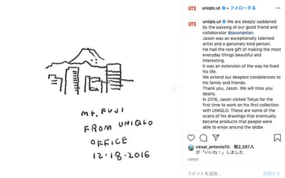 「ユニクロ(UNIQLO)」のTシャツブランド「UT」が、アーティストのジェイソン?ポラン(Jason Polan)の作品をあしらったコレクション「ジェイソン?ポラン UT」を発売する。1月29日の一般販売に先駆けて、1月27日からグローバル旗艦店「UNIQLO TOKYO」で取り扱う。