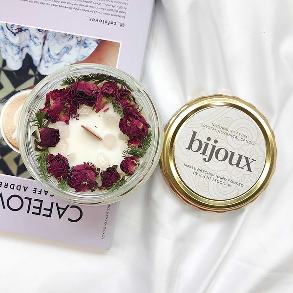 こちらの「LOVE, rosie Ⅲ」(税込3,000円)は、ローズのつぼみとムヒロスギが入ったクリスタルボタニカルキャンドル。お部屋全体に広がるさわやかなフローラルの香りで、しあわせなひと時を過ごして。