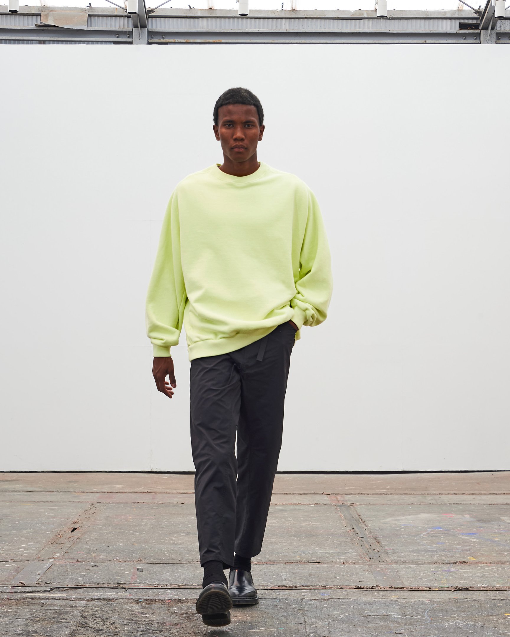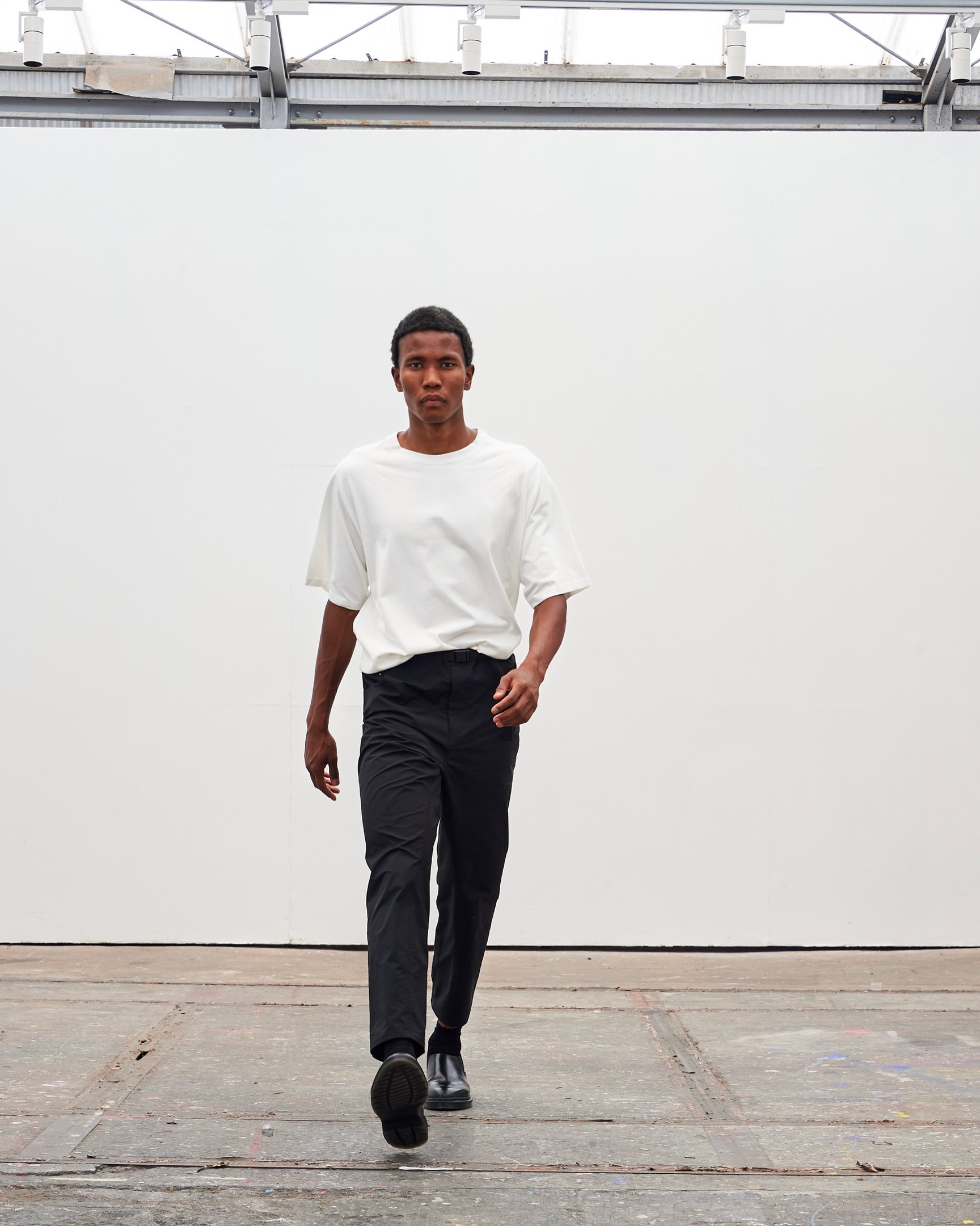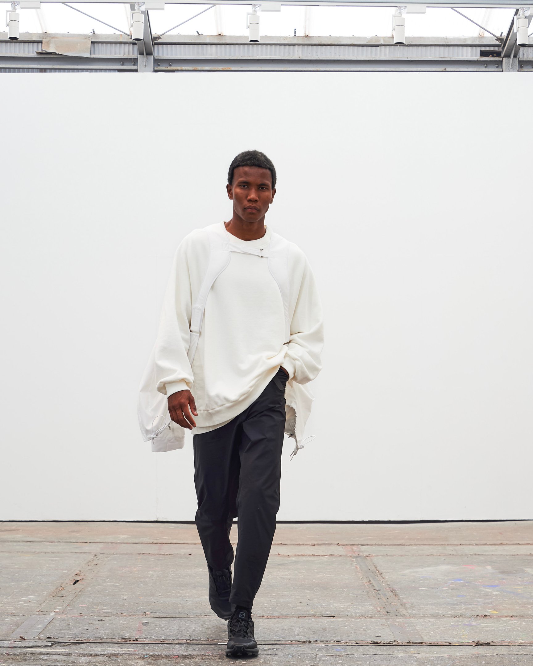 今回発売されたデビューコレクション「ISSUE 01 - Arrival」は、「THE LAND OF THE RISING SONS」で初披露。コレクションでは、黒曜石のような黒、平和の象徴である白、硫黄の色など、落ち着いたカラーパレットを採用し、リサイクルファブリックや撥水性の高いナイロン素材、オーガニックのスーピマコットンなどを組み合わせたアイテムをラインアナップ。アイテムは全て日本で生産され、メンズ、ウィメンズ、ユニセックスからなる8アイテムを展開する。