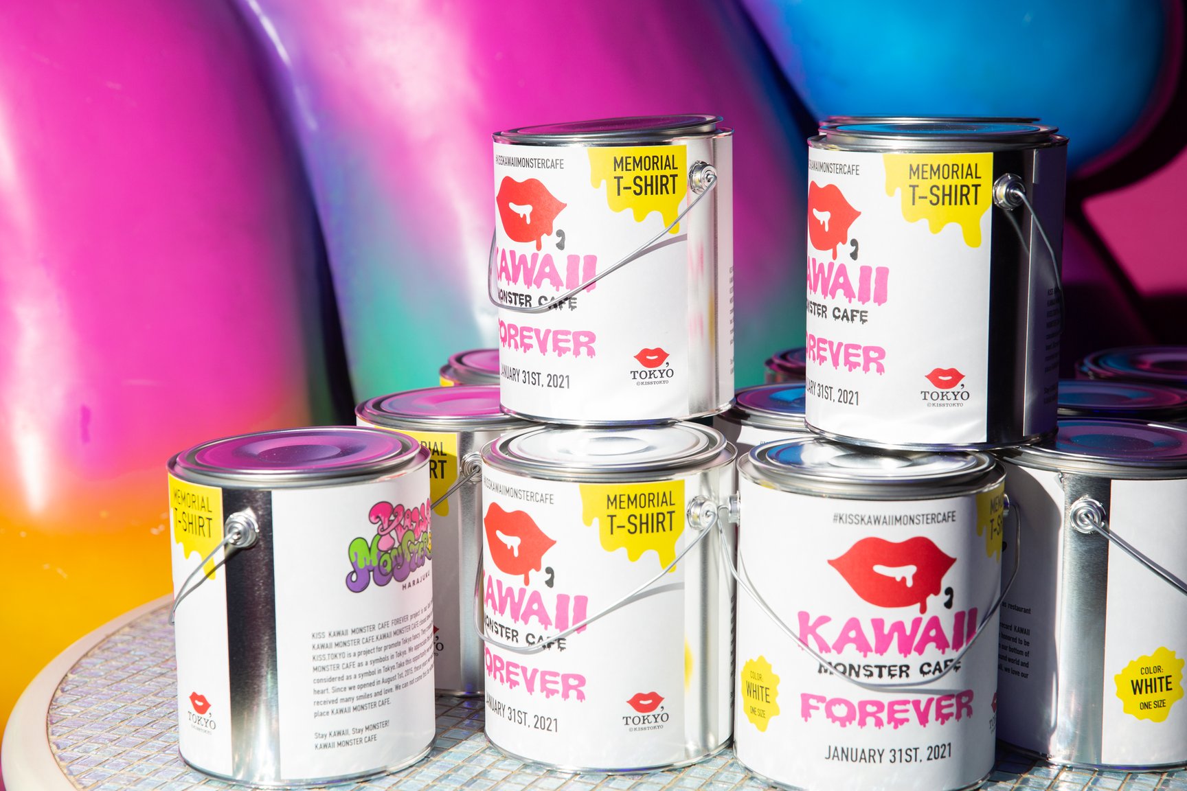 カワイイモンスターカフェはプロデューサーに増田セバスチャンを迎え、「モンスターの胃の中」をテーマに2015年8月にオープン。昼はカフェレストラン、夜はショーレストランとして運営しており、店内では原宿カルチャーを体現するアートやメニューを展開している。オープンから8ヶ月で来店客数が10万人を突破するなど原宿エリアの人気スポットととして人気を集めていた。グッズストアではファイナルセールとして50%オフセールを行っているほか、デザインオフィス「れもんらいふ」代表のアートディレクター千原徹也がデザインを手掛けた「キストーキョー(KISS,TOKYO)」とカワイイモンスターカフェの最後のコラボレーションアイテムとして「KISS, KAWAII MONSTER CAFE FOREVER Tシャツ」(税込5000円)を販売。コラボTシャツは31日以降、オンラインショップで展開する。