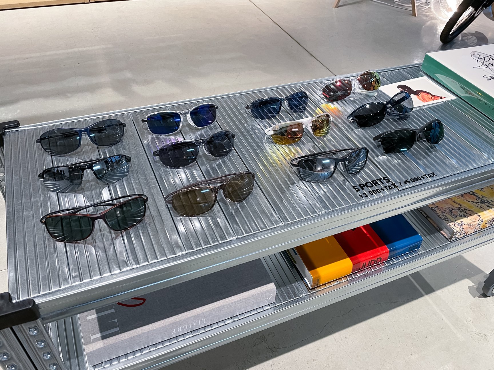 1階では、ACTIVE(5型/3000?5000円)とSPORTS(4型/3000?5000円)の2カテゴリーを展開。ACTIVEは、テンプルにシリコンラバーを採用し、サングラスをかけたままワンタッチで裸眼状態に切り替えられるフリップアップ機構を用いたモデルなどタウンユースとアクティブシーンでの着用を想定して製作した。SPORTSはテンプルの先端を曲げることでフィット感を向上させることが可能なクイックフィットや、レンズと目の距離を調整できるアクションノーズパッドなどの技術を取り入れた本格スポーツ用モデルを揃える。また、全7カテゴリーの一部商品が並ぶウォールも設けた。