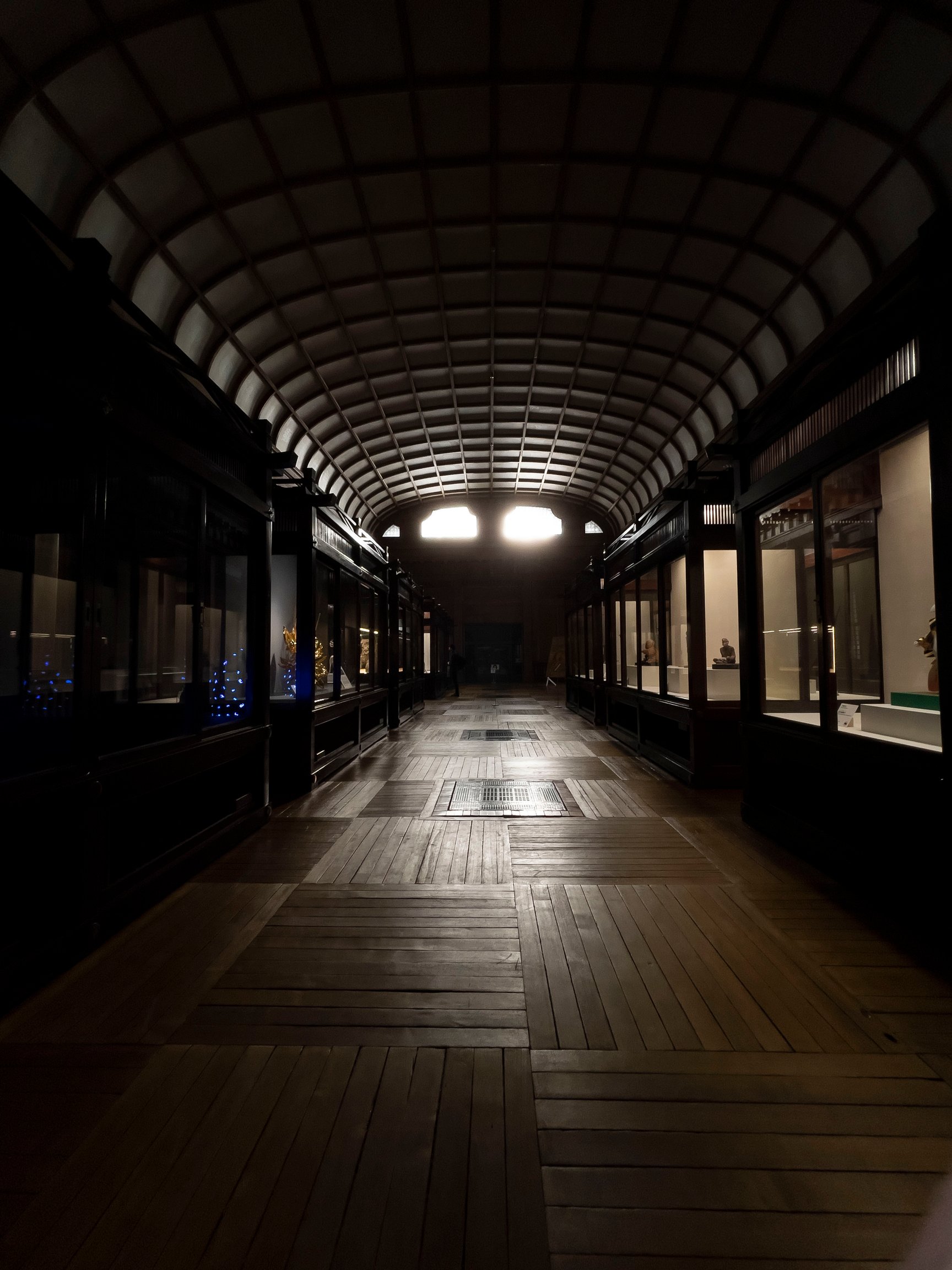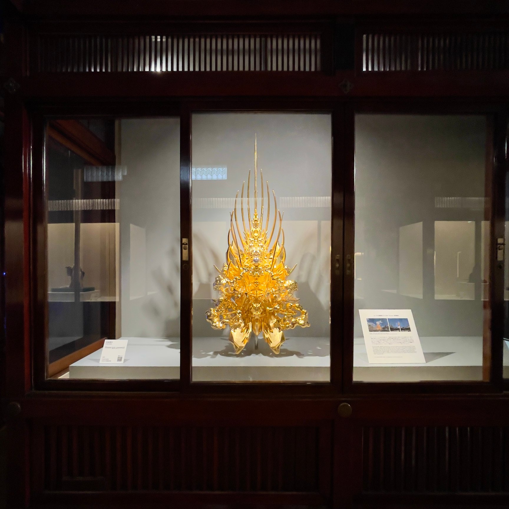 会場は明治天皇、昭憲皇太后ゆかりの品々を収蔵展示する施設で、2011年に国の重要文化財に指定された宝物殿。展示に使われている荘厳なケースそのものも重要文化財の指定を受けています。