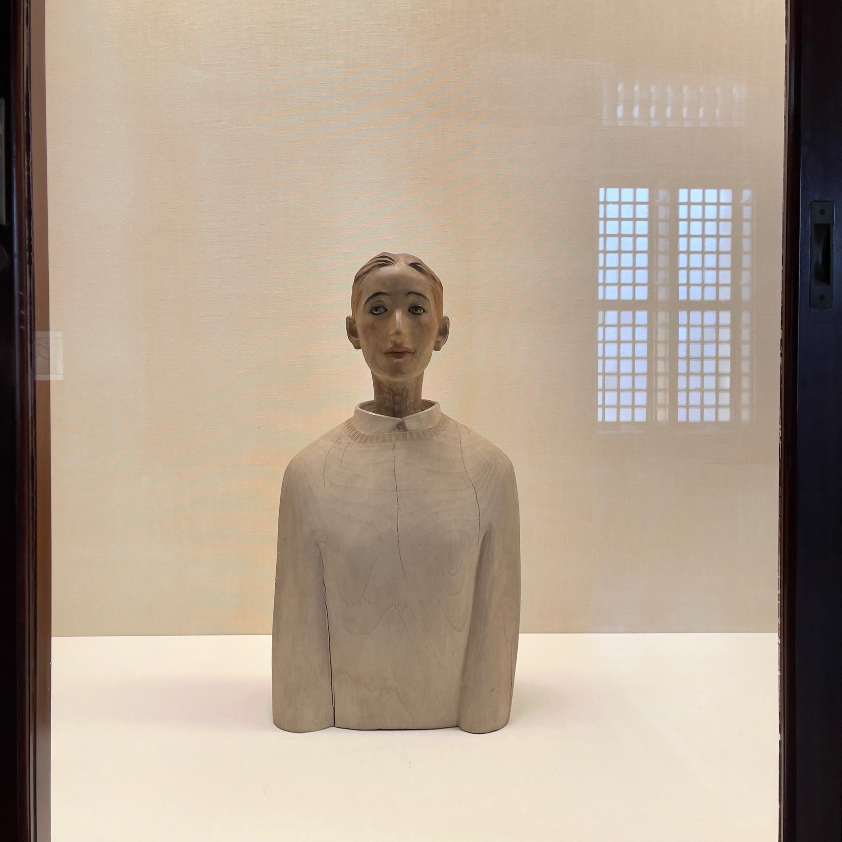 隣に展示される澄川喜一は一転して幾何学的な彫刻、舟越桂の珍しい作品は、本展をキュレーションした山口裕美が美術館で展示をしていない作品をと船越の家に飾られていた作品を持ってきたという。