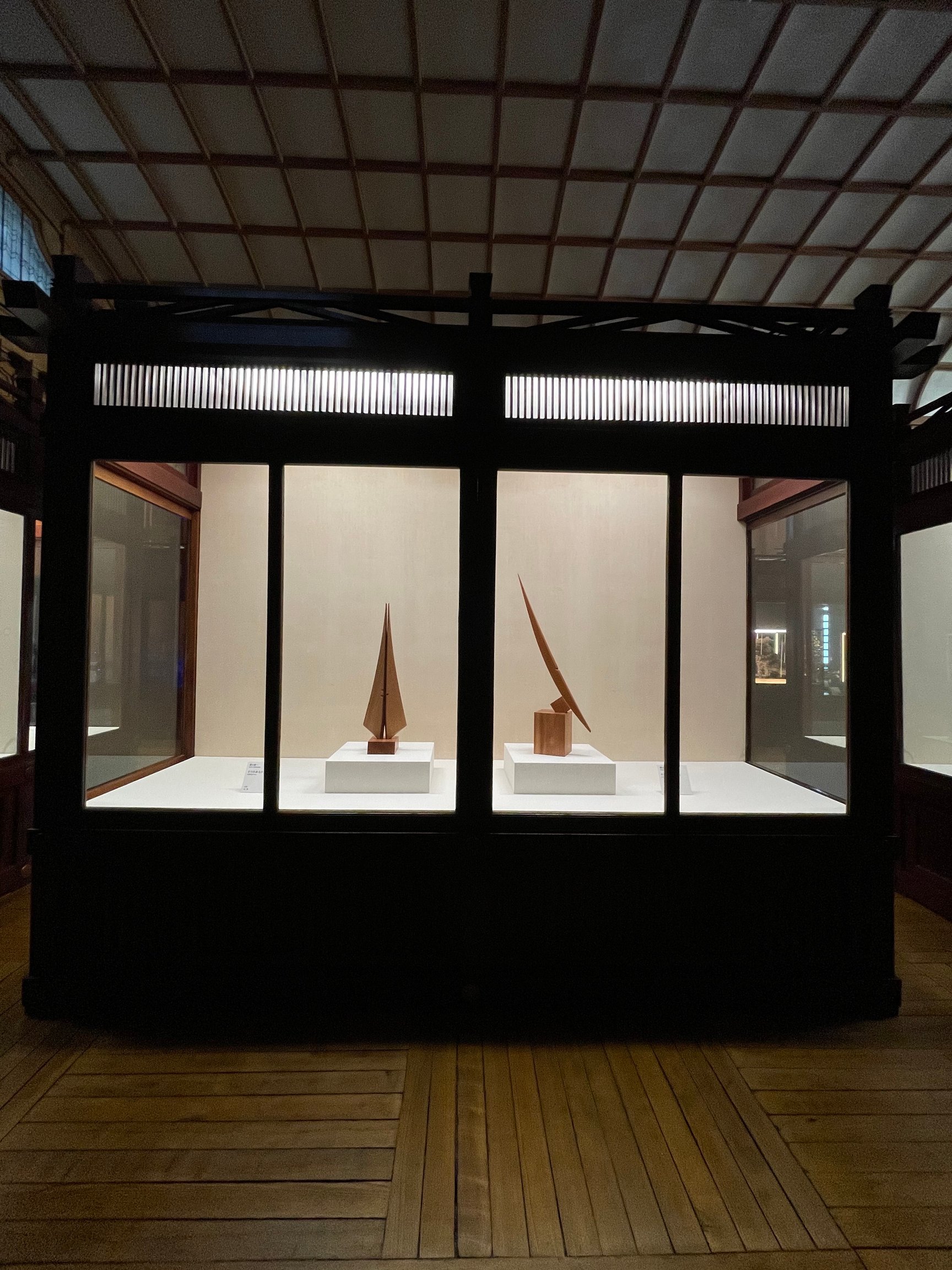 平櫛田中の百年以上前の作品から、この展覧会に合わせて作られた新作まで数多くの作品が重要文化財のケースに収められ、重要文化財の建物の中で展示されている展覧会。