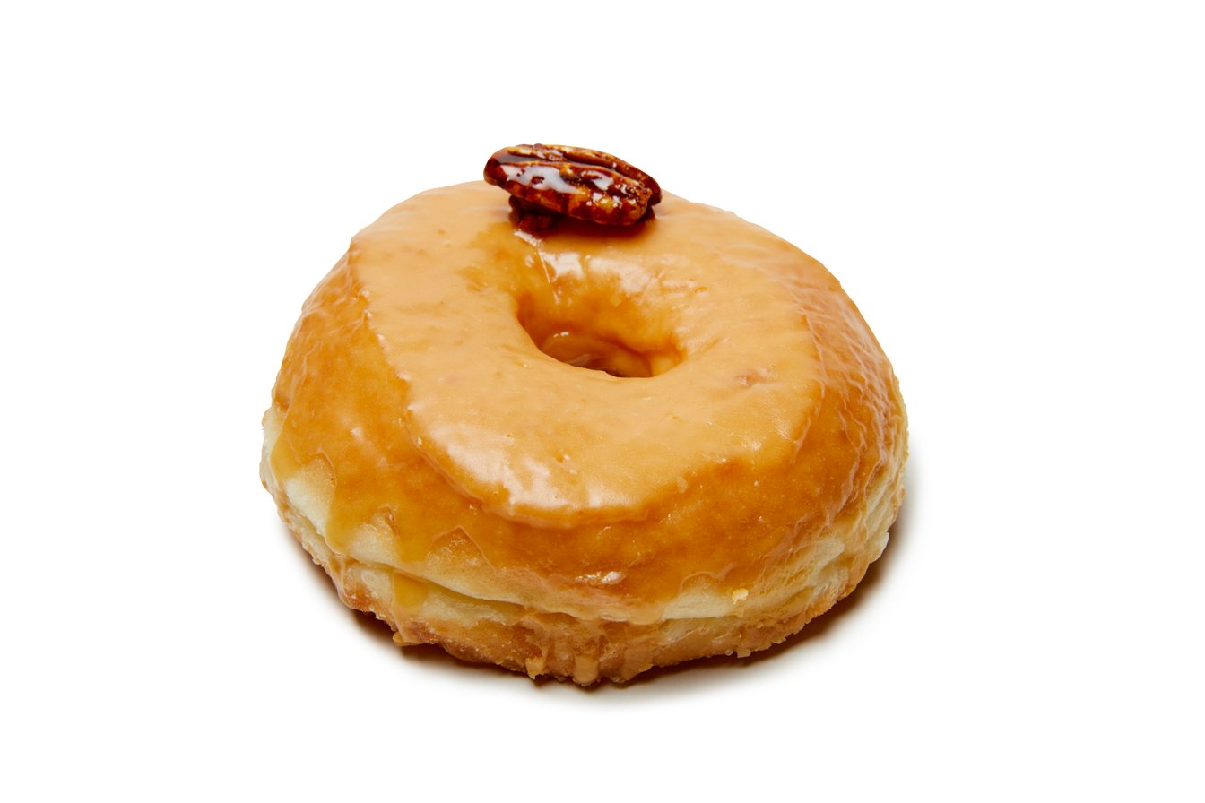 ひとつひとつ丁寧にキャラメリゼしたピーカンナッツがトッピングされ、ふわふわもちもちの食感の中にナッツの歯ごたえが感じられるドーナツです。