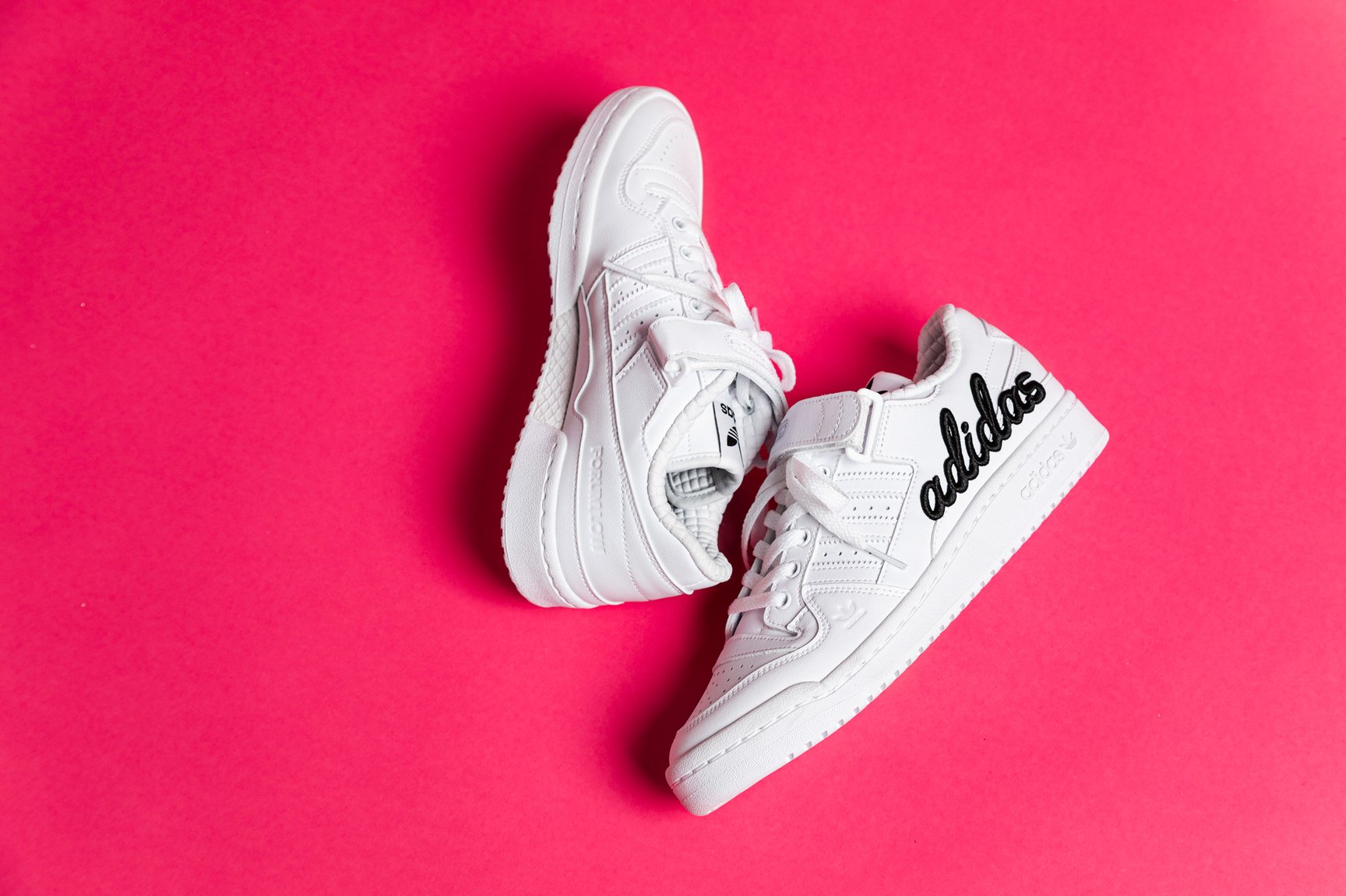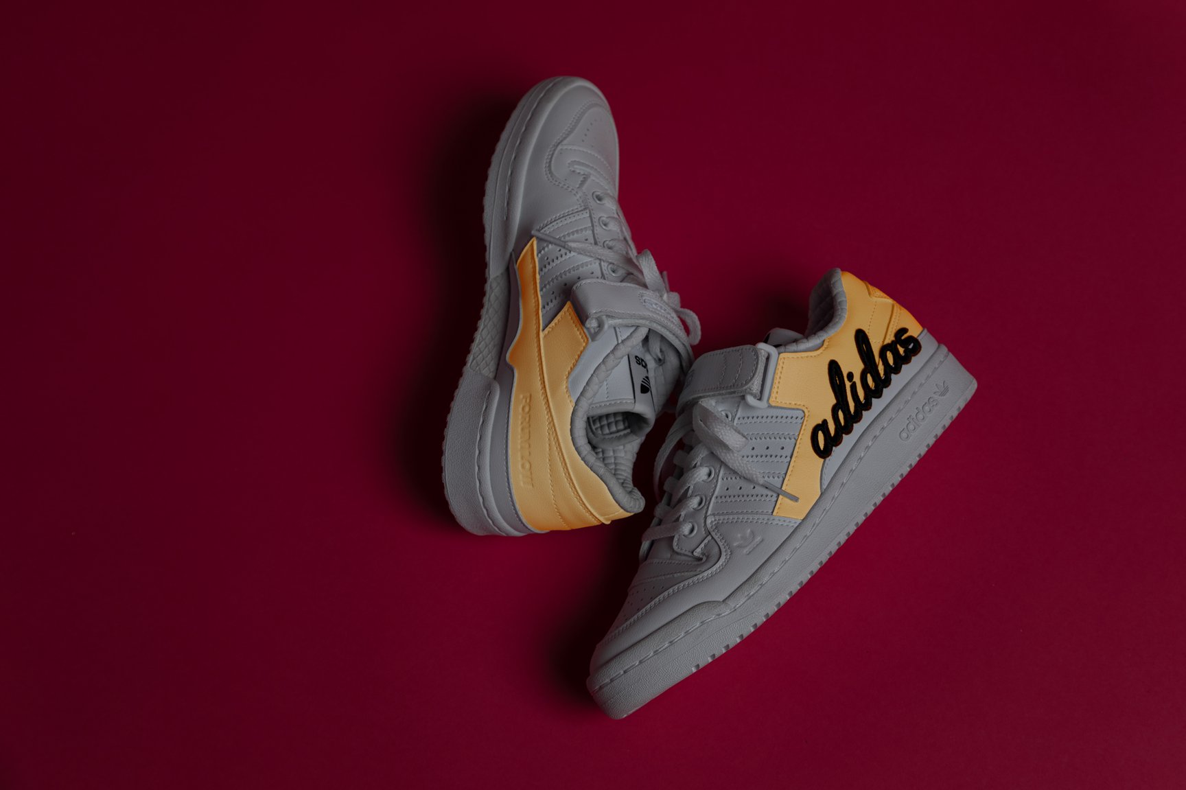 同モデルは「アディダス オリジナルス(adidas Originals)」のフォーラムロー「FORUMLOW」をベースに、コラボのオリジナルロゴを3D刺繍でデザイン。アッパーの素材の一部には、暗闇で発行するグロー?イン?ザ?ダーク(GLOW IN THE DARK)を採用した。