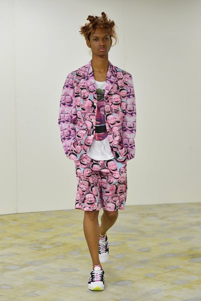 ユエは口を大きく開けて笑っている本人の顔をモチーフにした作品で知られており、「コム デ ギャルソン?シャツ(COMME des GAR?ONS SHIRT)」と2021年春夏コレクションでコラボレーション。インスタレーションでは、作品をプリントしたコム デ ギャルソン? シャツのアイテムを着用したマネキンが並ぶ。インスタレーションで使用しているTシャツ、ブラウス、 ジャケット、パンツ、スウェット 、スニーカーなどのアイテムは、店内4階にあるコム デ ギャルソン?シャツのスペースで販売している。