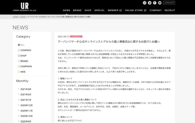 顧客情報の流出に関する事務局へのお問い合わせ:公式サイト