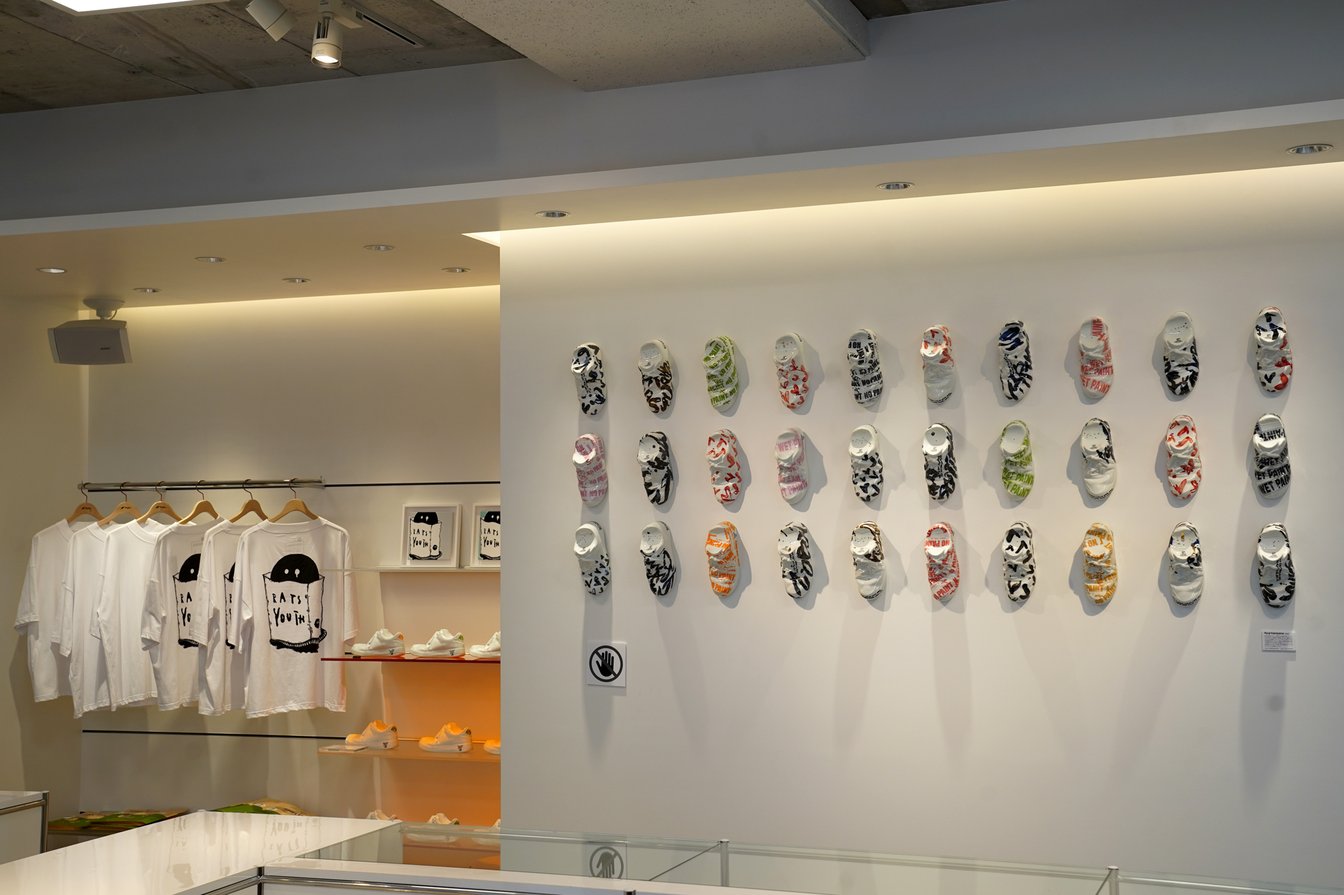 リニューアルを記念して、店内ではアーティストRyuji Kamiyamaのポップアップを開催。有田焼でスニーカーを再現したお香立て(1万7600円)を展示販売するほか、キャラクター「RATS」のグラフィックを落とし込んだ高機能素材「SHELECH」のTシャツ(5940円)を販売する。
