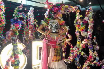 コラボドールは、「違う国で違う言語で生きている私たち。でも共通言語は"色"。"色"が放つパワーに私たちのプライドを託して、今こそカラフルにドレスアップしよう.....そんな気分」をコンセプトに製作。ジャケットとトップス、パンツには、ブランドのオリジナルデザインがプリントされ、実際の服をドールサイズで再現。左右で長さを変えたレインボーカラーの靴下や、ピンクカラーが目を引くPVCスカート、ブランドロゴマークのペンダントのほかに、3色のビビッドカラーのウィッグなどが特徴となっている。