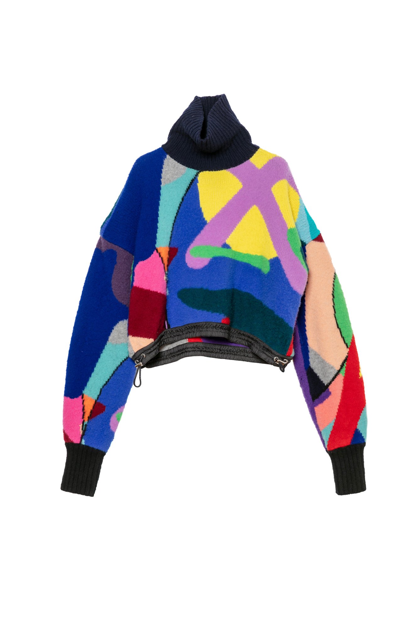 コラボコレクションでは「ウェアラブルアート」という概念を現代的に表現し、カウズのファインアート作品をレディ?トゥ?ウェアに落とし込んだアイテムを展開。カウズ作品を象徴するカラーパレットをメンズとウィメンズのピースに忠実に再現した。カラフルなマルチカラーとカモフラージュカラーの2色展開で、ウィメンズとメンズアイテムに加えてTシャツやフーディーといったユニセックスアイテムもラインナップする。