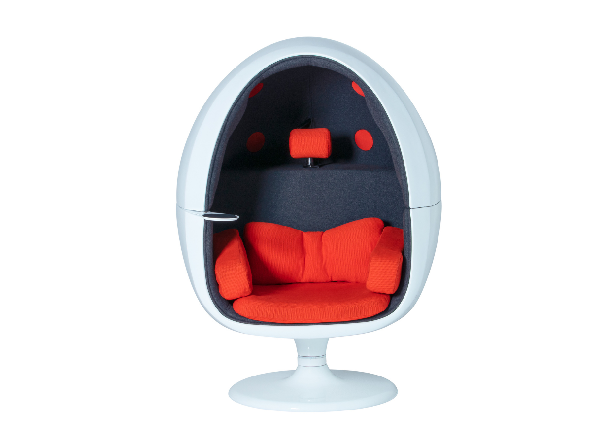 販売会社によると「実は周囲に雑音があるとその雑音レベルより小さな音がマスキング効果により、聞き取りにくくなります。静かな部屋でも車の走行音や風の音といった生活の様々な暗騒音が存在しますが、シェル構造のおかげで暗騒音レベルが20dbほど下がるがるので、今まで聞き取れてなかった小さな音を自然と拾える」といいます。さらに、ボールチェアから着想した吸音性の高いやや硬めのウレタンの内装材によって、音漏れがほとんど気にならないそう。