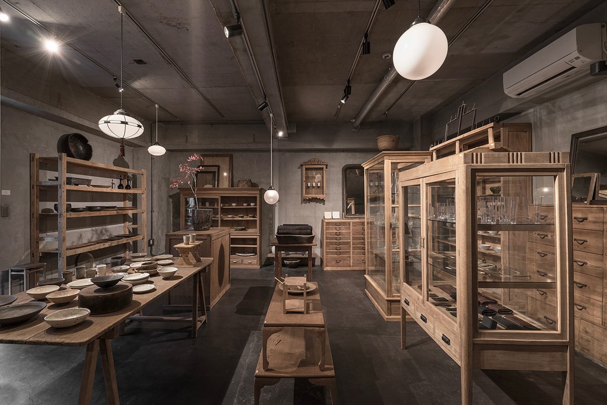 店内には、職人による丁寧なメンテナンスで生まれ変わった、昭和や大正生まれの美しい家具が並ぶ。益子焼きを中心とした器は、日常使いにもインテリアにするのにもぴったり。一点モノのアイテムたちとは一期一会のため、お気に入りを見つけたら迷わず購入するのが吉だ。