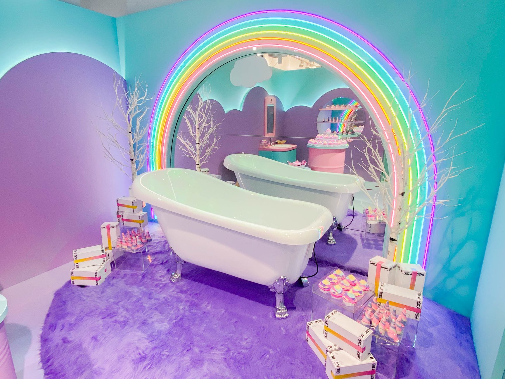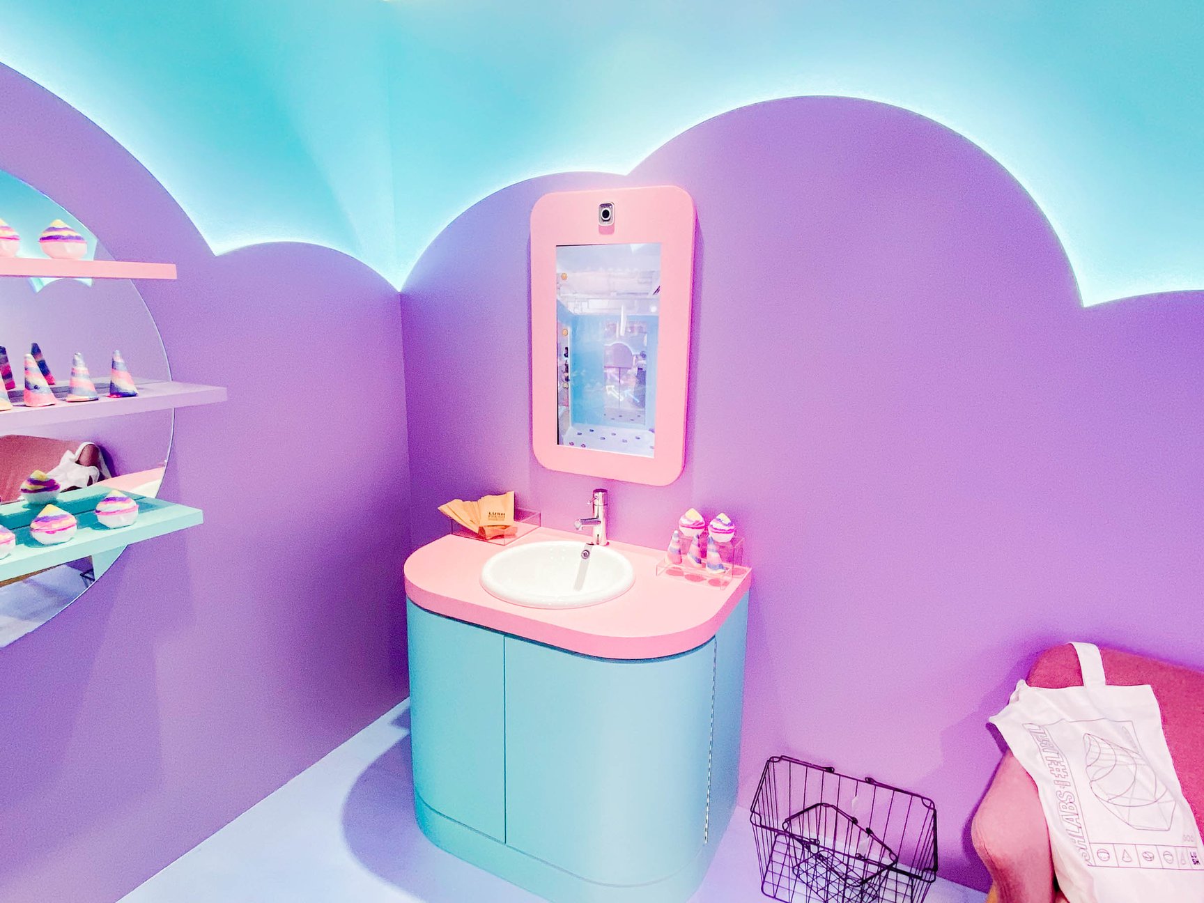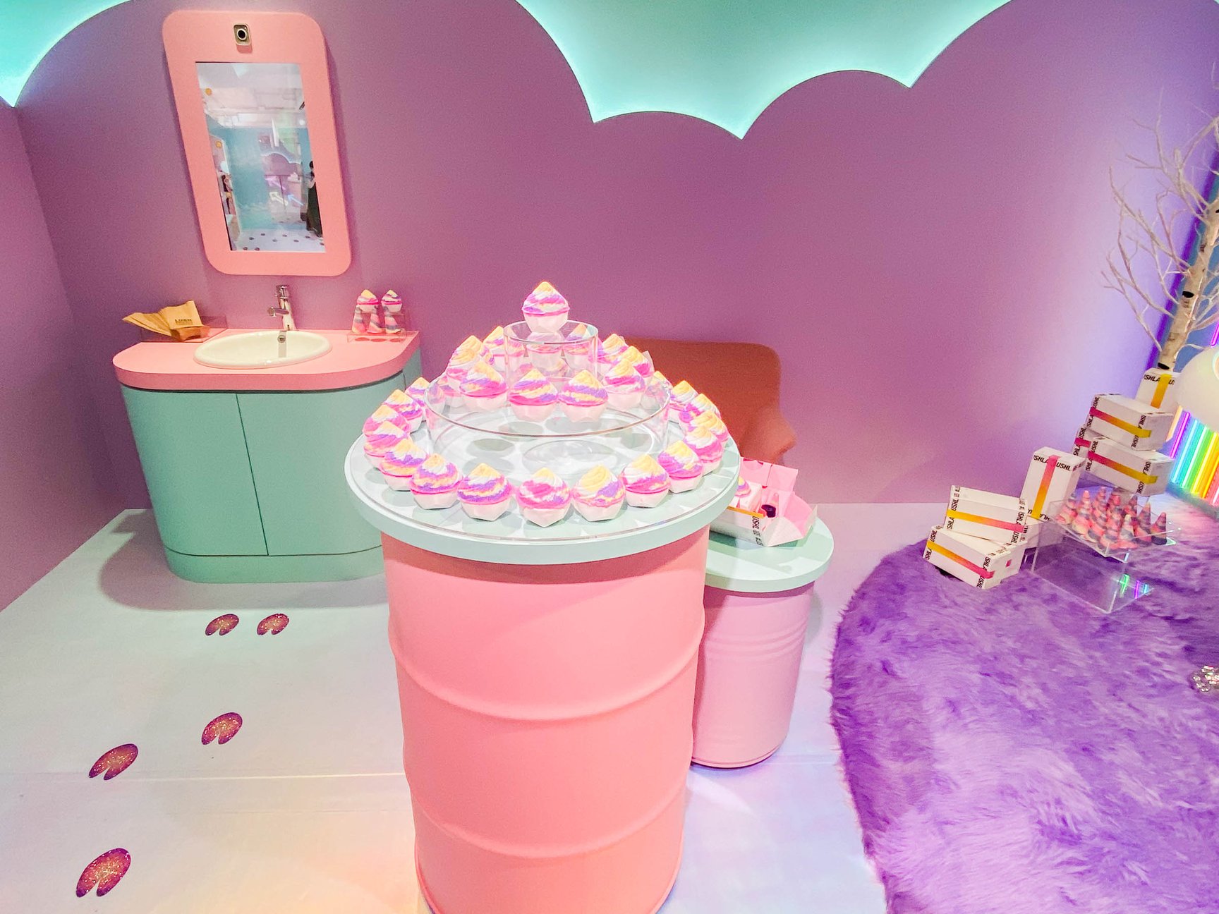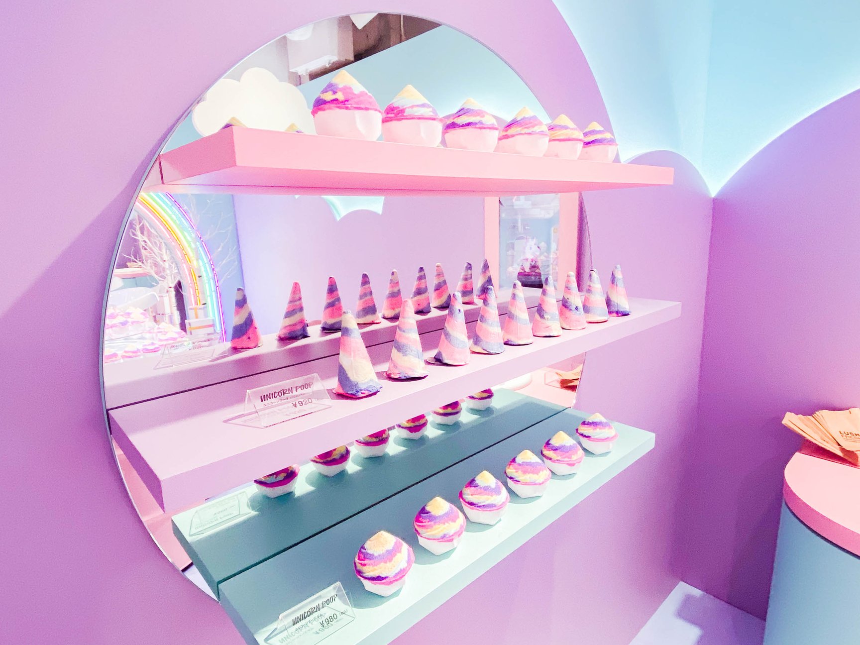 そして、原宿店2階にオープンしたポップアップスペースは、アプリ内のゲームにクリアすると入室でき、ユニコーンのバスルームのようなデザインに仕上げた。デジタルミラーで顔がユニコーンになるミニゲームや、バスタブのオブジェに入ってセルフィーを撮影するなどで楽しめる。なお、店頭ではバスボム(980円)とバブルバー(920円/いずれも税込)のみ単品販売している。ユニコンプープと連動したポップアップは10月15日まで。その後は3ヶ月ごとに新たな限定商品を発売し、ポップアップ内容も切り替える予定だ。