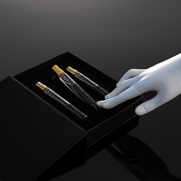 「La Nuit」の第1弾となるプロダクトでは、第1曲『オンディーヌ』、第2曲『絞首台』、第3曲『スカルボ』をそれぞれを香りで表現した、10mLのオードトワレ3本がセットになっています。