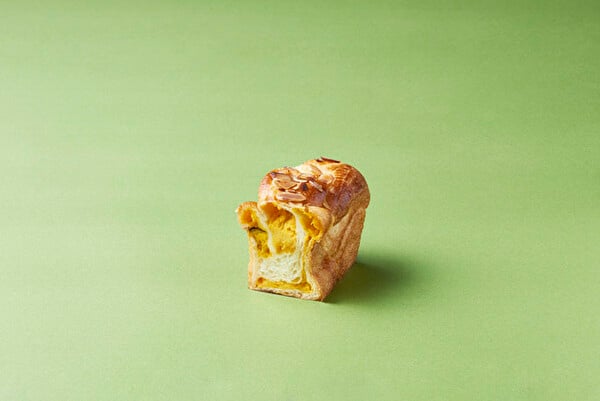 『かぼちゃ食パン ~やんわりスパイシーブリオッシュ~』(税込399円)は、甘めのブリオッシュ生地でかぼちゃクリーム&スパイスで味付けした皮付きかぼちゃを包み込んだ、クリーム食パンです。