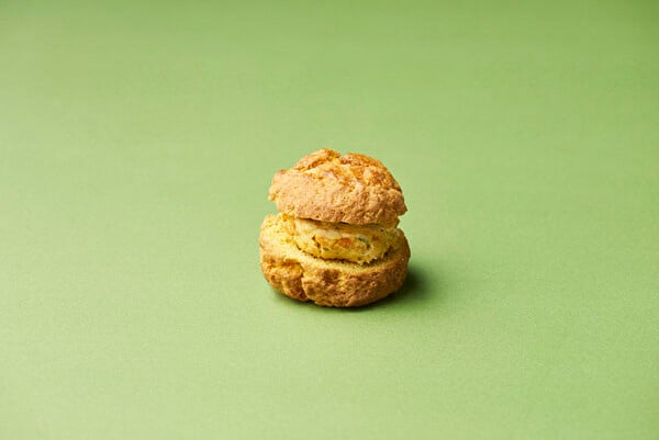『かぼちゃのスコーンサンド』(税込302円)は、かぼちゃがたっぷり練り込まれたサクホロ食感のスコーンで、粗く潰したかぼちゃを和えたクリームチーズがサンドされていますよ。