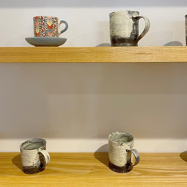 マグカップやフリーカップ、さらに珈琲のおとものお菓子にあわせたお皿などが、展示販売されています。
