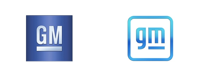 GMのロゴリデザイン: 旧 (左) | 右 (新)