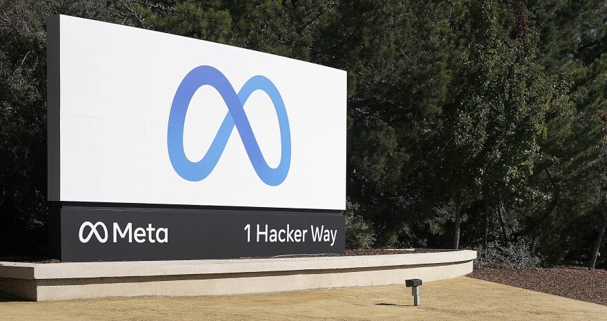 Meta社の前にあるサインも以前のいいねボタンから変更