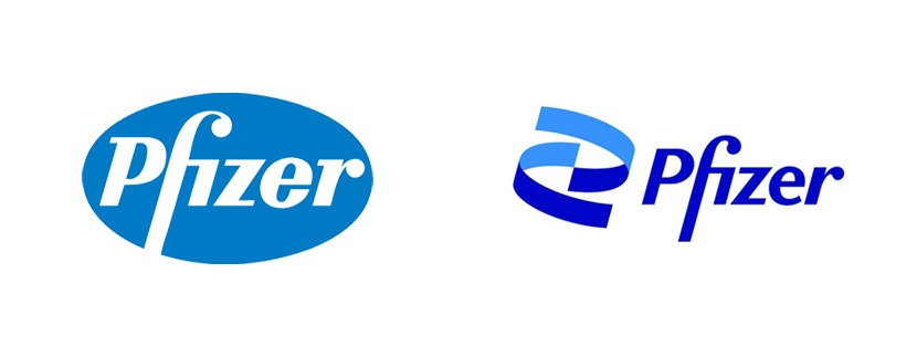 ファイザーのロゴリデザイン: 旧 (左) | 右 (新)