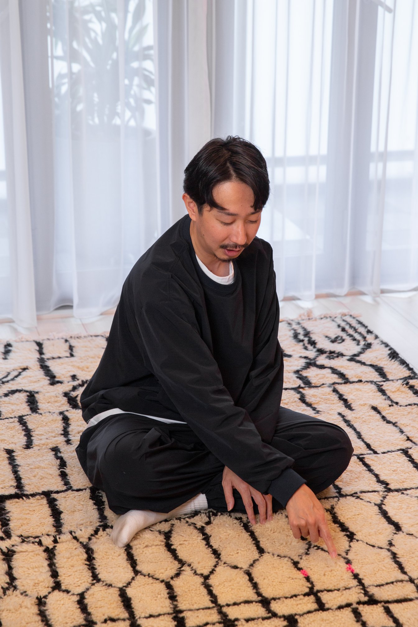 かっぴー :「ザラビヤ(Zarabiya)」はモロッコのラグを扱っているセレクトショップで、普段はオンラインを中心に展開しているんです。ポップアップイベントが開催されているのを知って見に行った時に買いました。一点物のラグです。