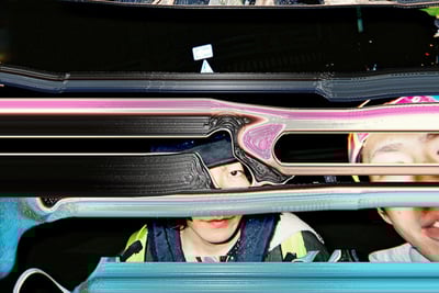 同展では、レンチキュラーやミラーシートなど視覚に作用する素材を用いた写真を展示。渋谷で撮影した複数の夜景イメージを遊戯的に再構築することで、イメージの量産や拡散が容易に行われる現代において、テクノロジーが孕む可能性と矛盾を考察したという。