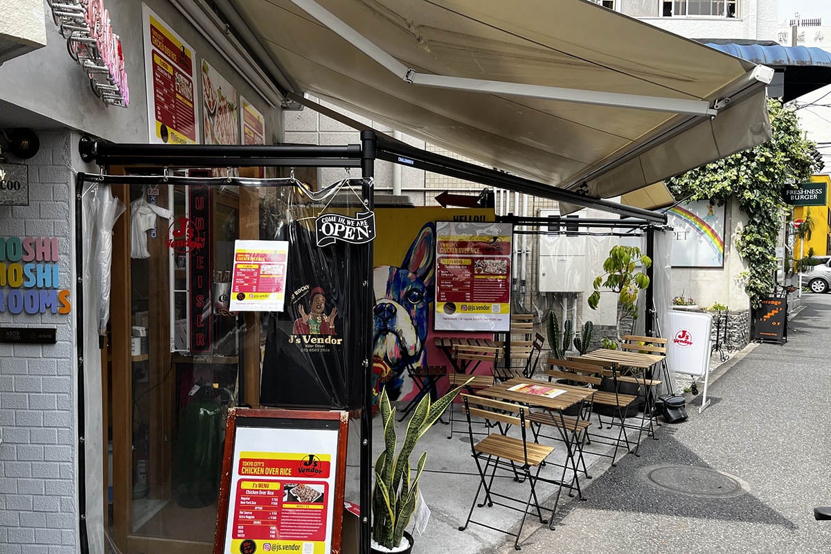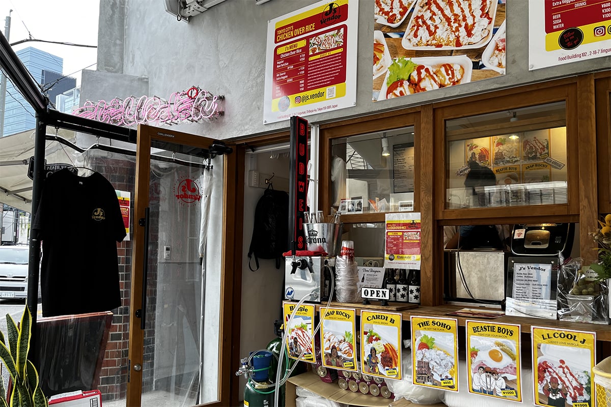 場所は神宮前2丁目。ブランド「CHALLENGER」のショップとAirbnbとASOBISYSTEMが運営するコンセプトルーム「MOSHI MOSHI ROOMS」に連なる1F部分にある。仕事の時はサクッとテイクアウトするも良し、休日は仲間とビールでも飲みながら、オープンテラスのイートインスペースでゆっくり過ごしたくなる。時々、屋上を開放したパーティも行っているそうだ。原宿でチキンオーバーライスといえば、J's Vendorと覚えておくといい。本格NY直送バイブスの味が楽しめる。
