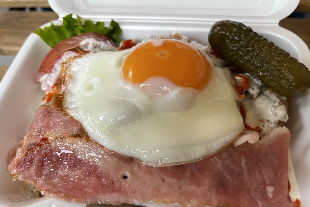 「BEASTIE BOYS」はチキンの上に目玉焼き、ベーコンを乗せたメニュー。3つの組み合せだから3人組のBEASTIE BOYSの名前を取ったのかと思ったが、「アメリカのダイナーにいそうなイメージだから、モーニングに出てくるメニューを乗せた」とのこと。エッグとベーコンの相性は言わずもがな、お米と柔らかいチキン、ソースとの相性もばっちり。