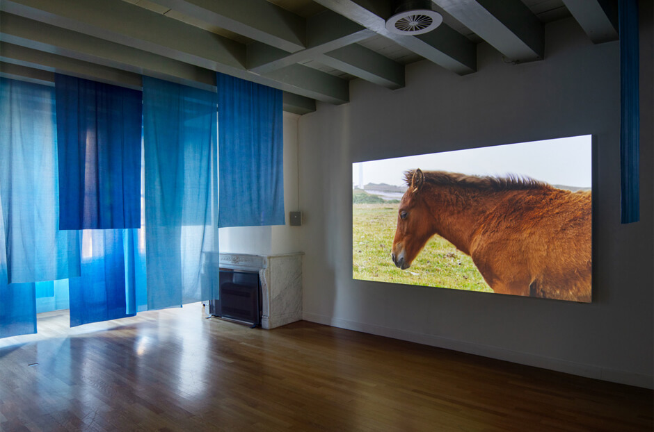 3部作が完結を迎える「Ao (Blue)」でDumasは、与那国島、そしてその島を自由に歩き回る絶滅寸前の在来馬の品種を研究。