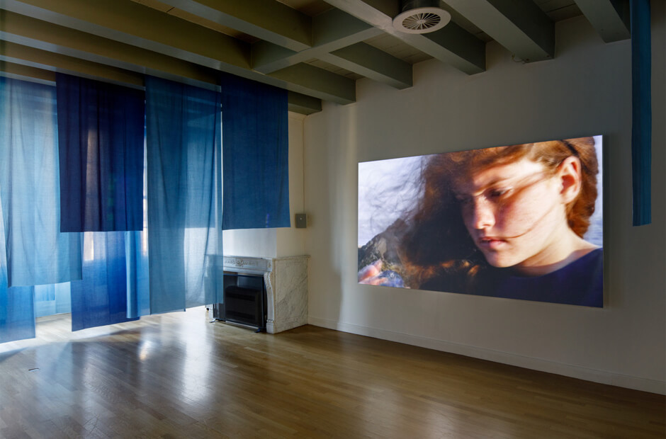 ガラスのオブジェ、バレエシューズ、馬の衣装といったモチーフの中には、日本の自然や神秘的な馬の姿、そして各作品に登場する3人の少女を繋ぐ、美しい「青」が繰り返し現れる。