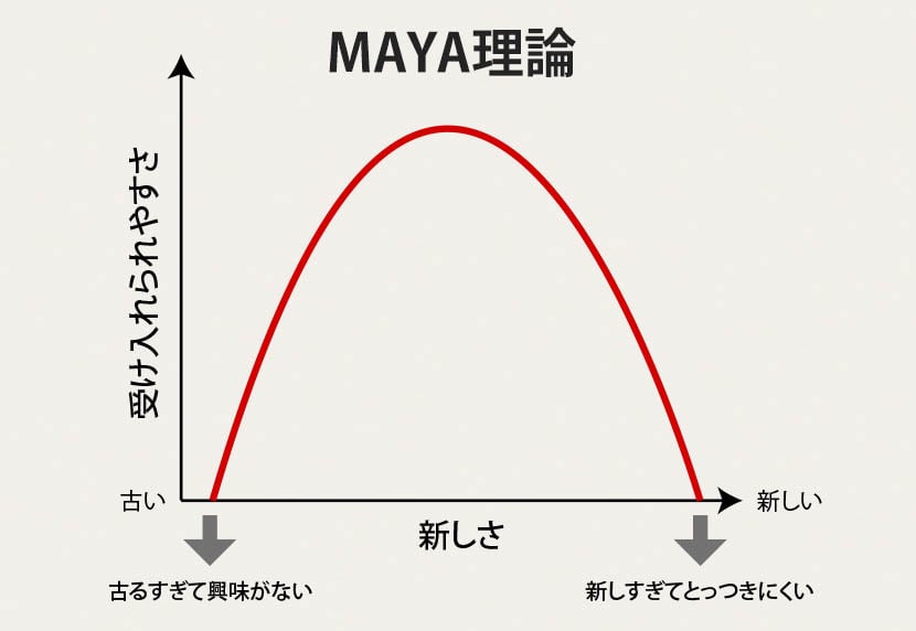 最後にご紹介するのは、マーケティングはさることながら、サービスデザインにおいても知っておくと便利な「MAYA理論」だ。