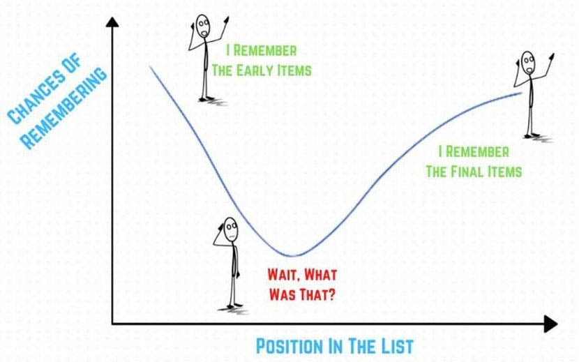 すなわち、一連の情報のうち、最初と最後の内容は覚えやすく、中間に位置する情報は見逃しやすいということ。