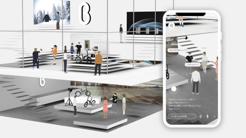 「メタパ」の第1号店は、体験型ストア「b8ta」のVR店舗でした。現在「Virtual b8ta」では、チェーンレスの折りたたみ自転車“HONBIKE”やイヤホン型脳波デバイス“b-tone”などを展開しています。