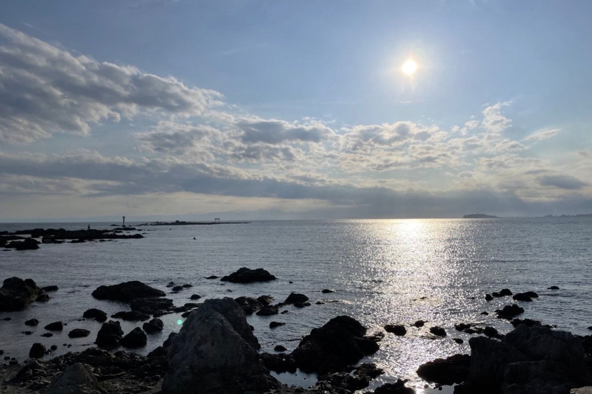 「葉山は生まれ育った町なので、幼いころから山登りや海水浴など自然の中で遊んでいました。自然あふれる葉山の中でもオススメは海です。写真は会社の上司と葉山沖でヨットに乗っているときのもの。私は小学校の頃からヨットスクールに通っていたので、部署の垣根を越えてHHの仲間とヨットを楽しむことができたのは嬉しい思い出です。もう1枚は私が一番好きな森戸神社から見える海で、天気が良いと富士山?江の島?名島の絶景が楽しめます。ここ数年はコロナ禍で、海でのアクティビティがなかなかできない状況でしたが、今年の夏は、葉山の海でヨットやSUPを久しぶりに楽しみたいと思っています。」