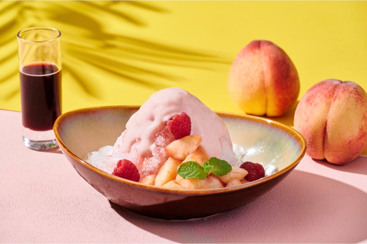 低温でじっくり焼き上げた絶品のローストビーフを味わえる「37 ローストビーフ」には桃を贅沢に丸ごと1個使用したかき氷が登場。