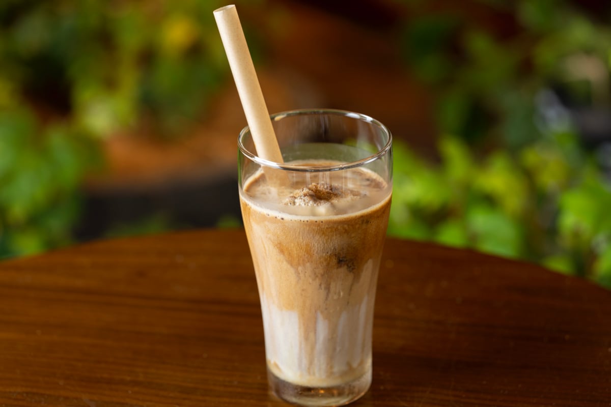ウィスキーのようなスモーキーさとトロピカルフルーツのような甘さをもったベトナム産コーヒー豆のエスプレッソをかき氷に仕上げ、練乳と牛乳を合わせた。ストローでかき混ぜると、氷とミルクが混ざってフラッペに変身する。ビターで奥深さがある大人のコーヒーフラッペ。