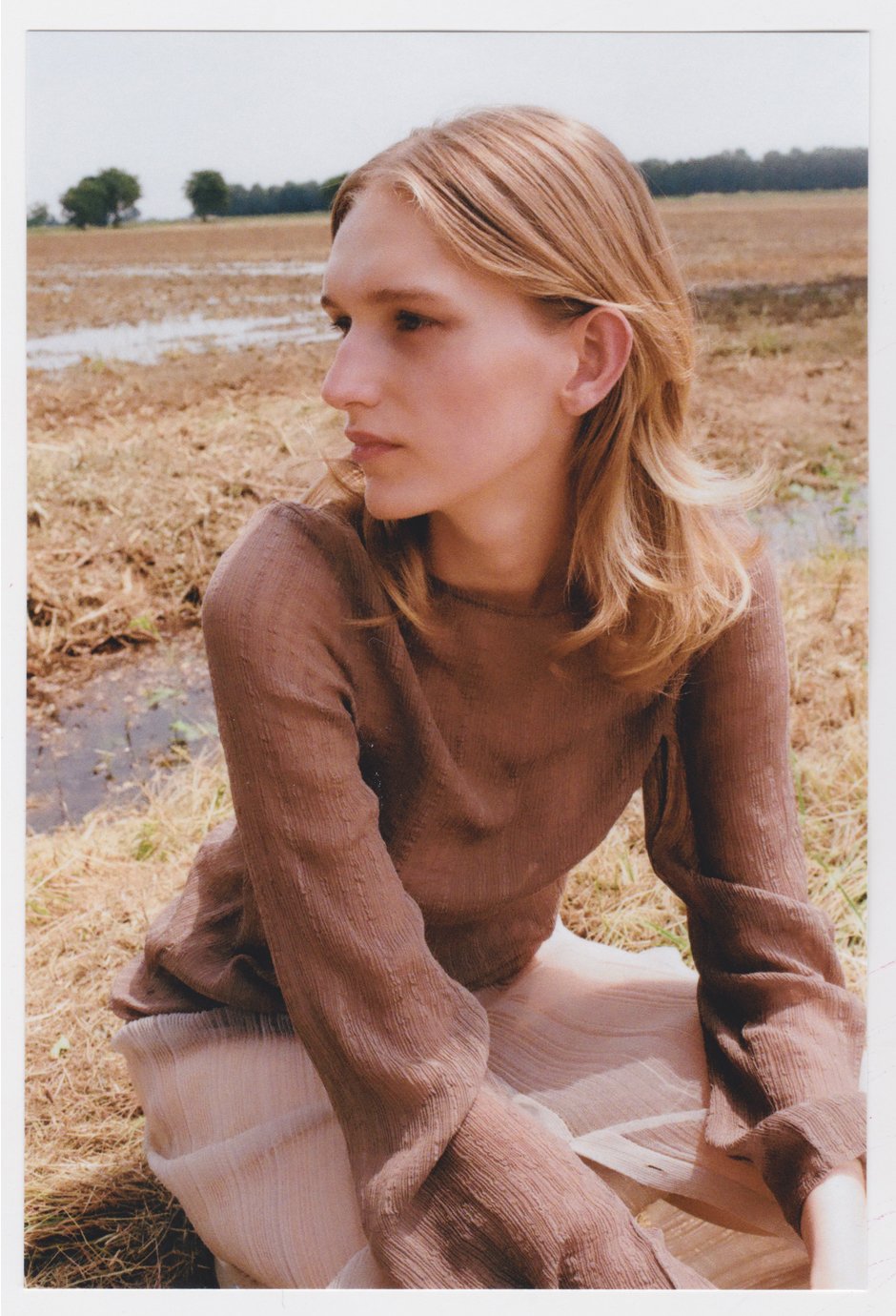This work is inspired by an evergreen aesthetic of a contemporary nature in which the protagonist mixes her figure and soul with the environment.