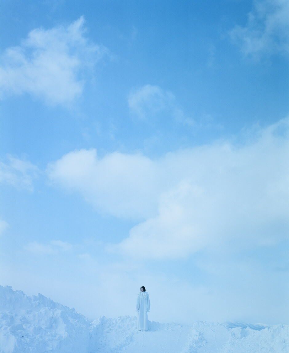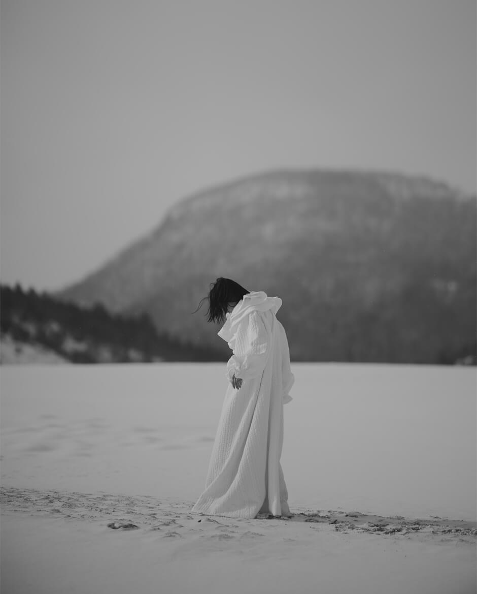 これまで幾度も北海道を訪れたことがあるという熊谷が「内包する思考が巡っていく感覚」で切り取る景色の美しさ、そこにモデル 安藤潤美が放つ凛とした存在感。