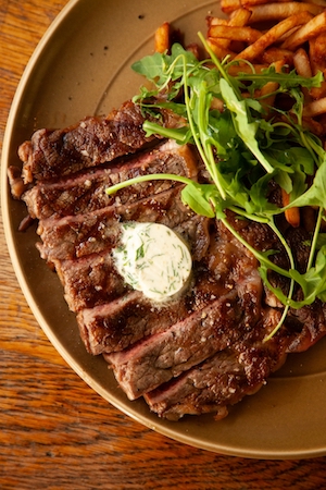 ディナーにはビールや自然派ワインに合う肉料理などが楽しめる。