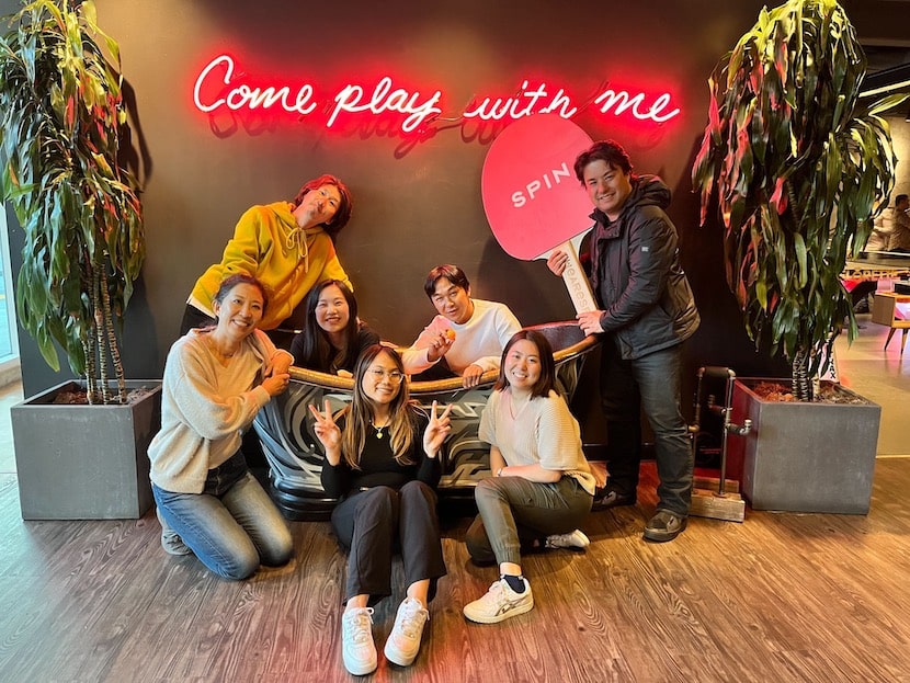 東京オフィスのスタッフがサンフランシスコに出張に行った際に行われた、卓球場でのチームビルディング